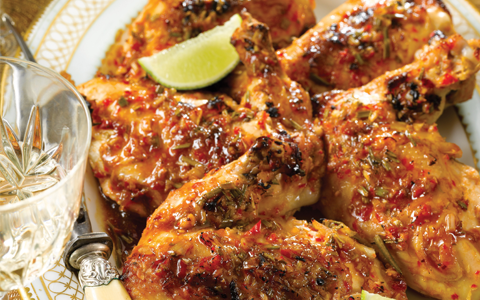 - Heat the olive oil in a large pan over medium high heat. Add the chicken breasts and season on both sides with salt, pepper, oregano, basil. Cook 2-3 minutes on each side just until browned. Transfer the chicken to a baking dish. In a small bowl, mix together the butter, garlic, chilli and chicken broth and lemon juice. Pour the butter mixture over the chicken. Bake 20 to 30 minutes until chicken is cooked through. Bake time may vary depending on the thickness of your chicken breasts. Spoon the sauce on the bottom of the baking dish over the chicken, garnish with chopped parsley and serve with a slice of lemon. Serve this dish with a baked potato or a green salad as a lunch or light dinner.