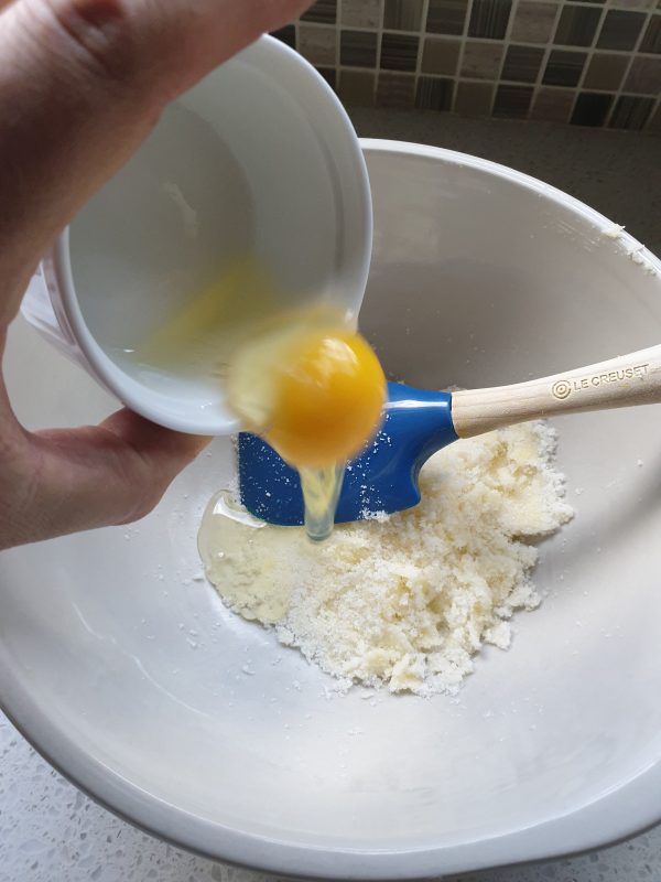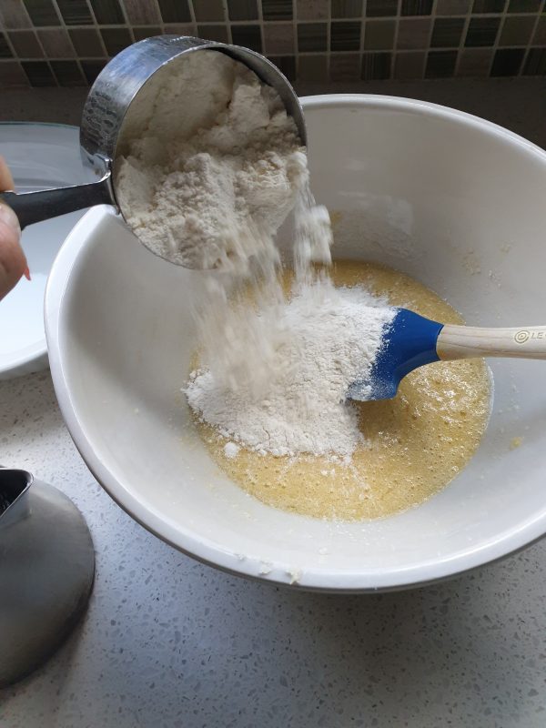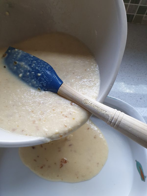 3. Add the milk and flour to this mixture, a little bit at a time, alternating between the flour and the milk. Incorporate well.