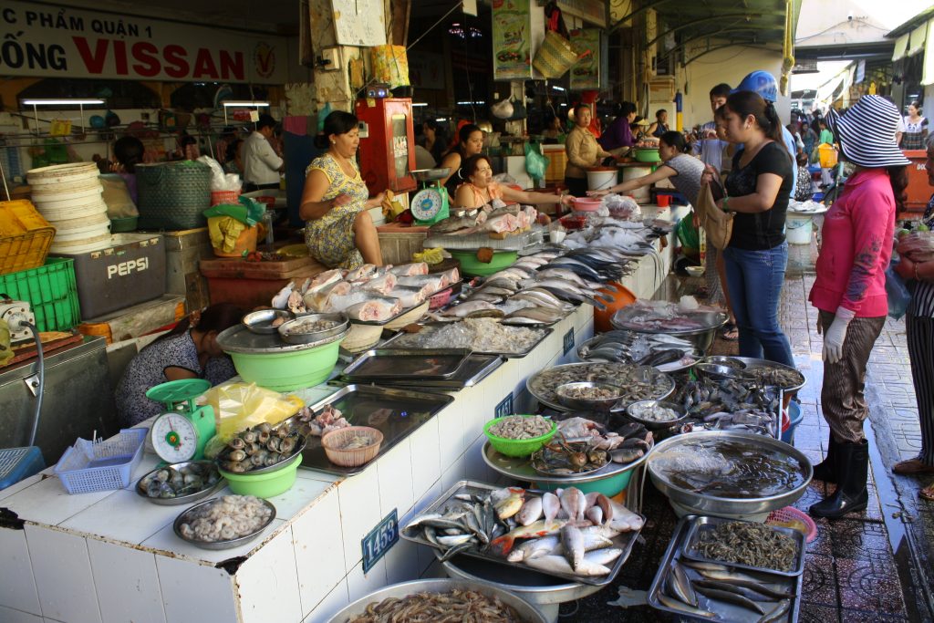 A Vietnamese dish can be enjoyed any time of the day and are not divided into courses. Food is served at once and shared from common dishes. Rice and noodles may be eaten with the meal. Northern Vietnam tend to cook and enjoy stir-fries , while in Southern Vietnam vegetables, fish and other seafood are the favourite and in Central Vietnam much more spicier and colourful food are eaten and served.